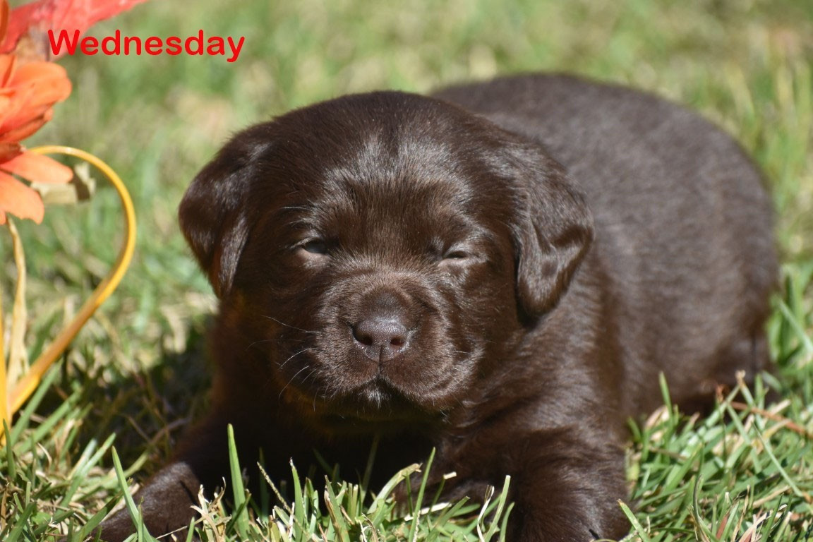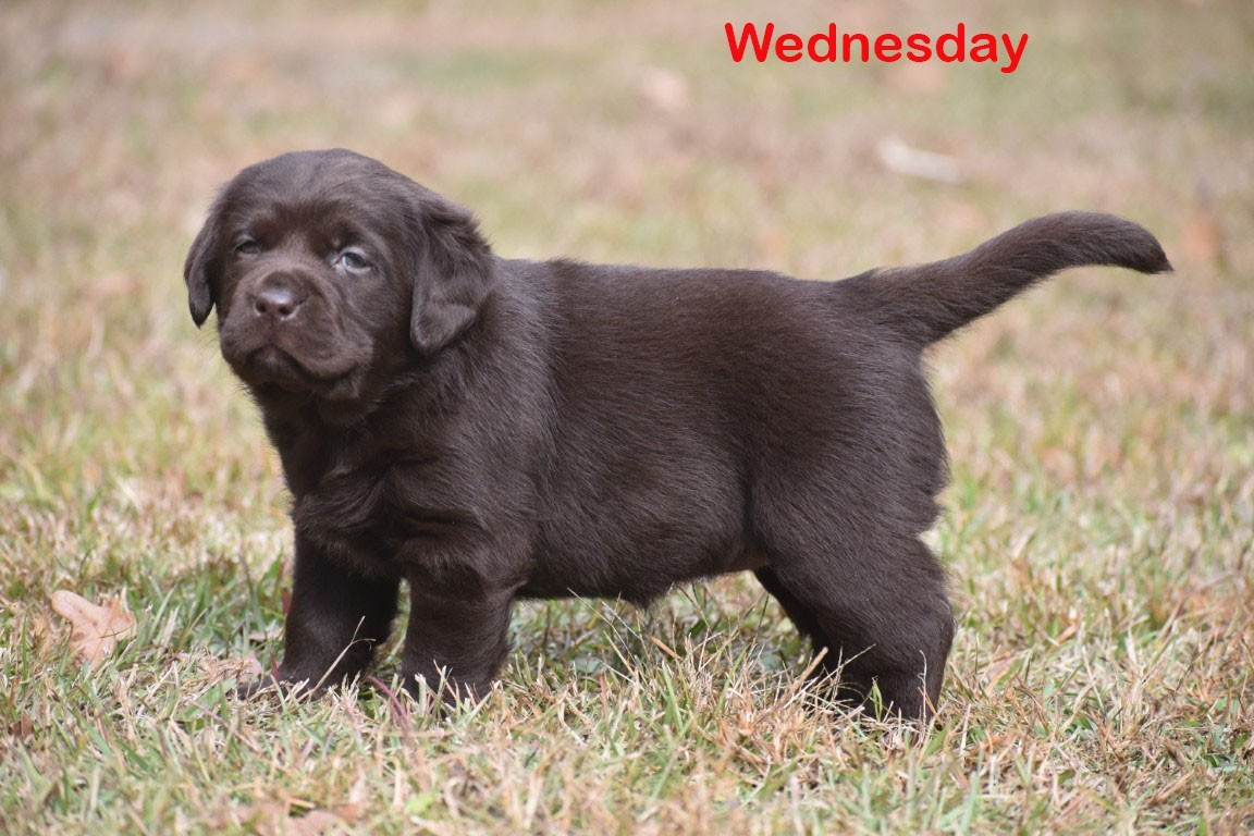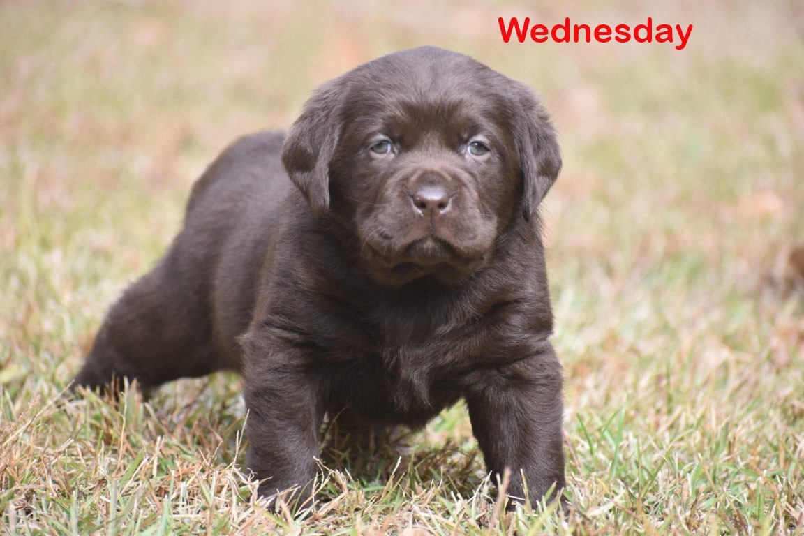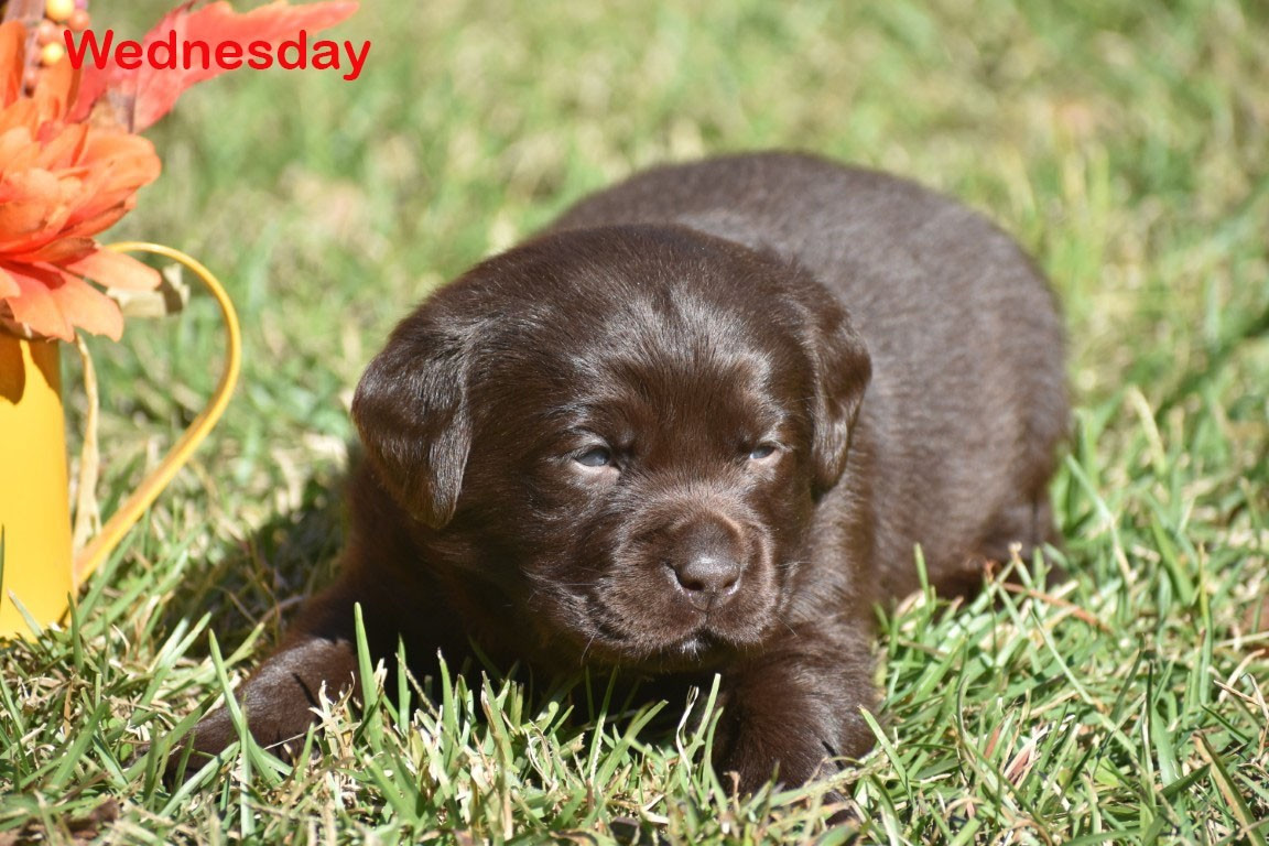 Gose and Echo had their all chocolate litter on 10-10-2025. This is a first time pairing as mom is our new upcoming girl off of my wonderful Deuce and our late awesome Hoss. She loves the water and loves to retrieve which she definitely gets honest from her dad and grandad. These babies should be very eager to please and athletic. Echo is our new stud that has been producing some lovely puppies already. He has a wonderful show type lineage and he has great drive and loves to retrieve. He is the happiest of all dogs and is so laid back and goes with the flow. These babies are priced at $2200.00 and come with prepaid microchip and AKC limited registration. They will be able to start going into their new homes on 12-10-2025. We are currently still working on our deposit lists. Please contact me with any question you may have.