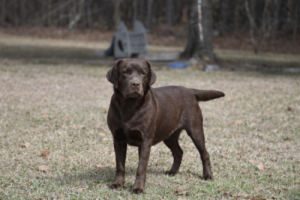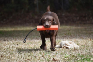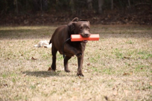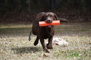 She has undergone retriever training and obedience work with great success. Despite not having had the chance to put her skills to the test in the field yet, Guinny has demonstrated that she is incredibly easy to train. Her willingness to cooperate and her enthusiasm make her a joy to work with. One of her charming habits is her constant desire to carry something around, which speaks to her instincts and playful nature.