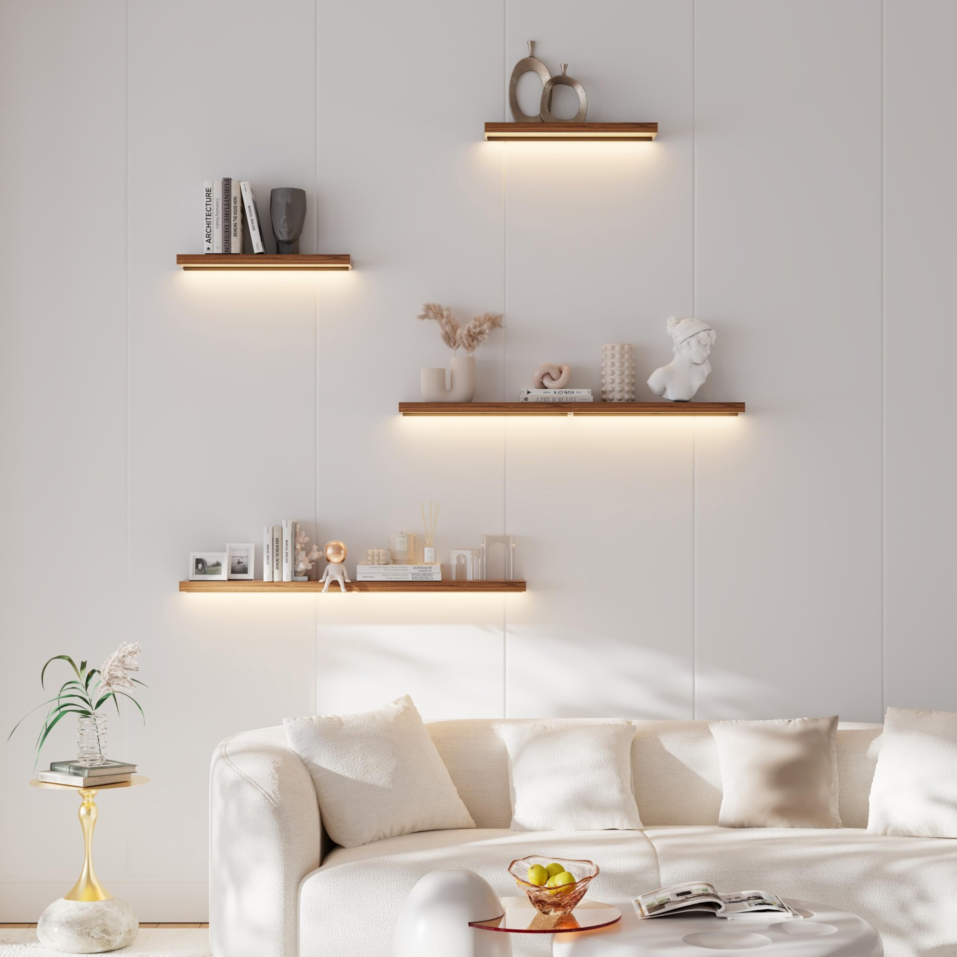 Solid oak shelves are the perfect way to give a room both modern or classic feel. We provide floating oak shelves with and without lighting and a choice of brackets depending on wall type.