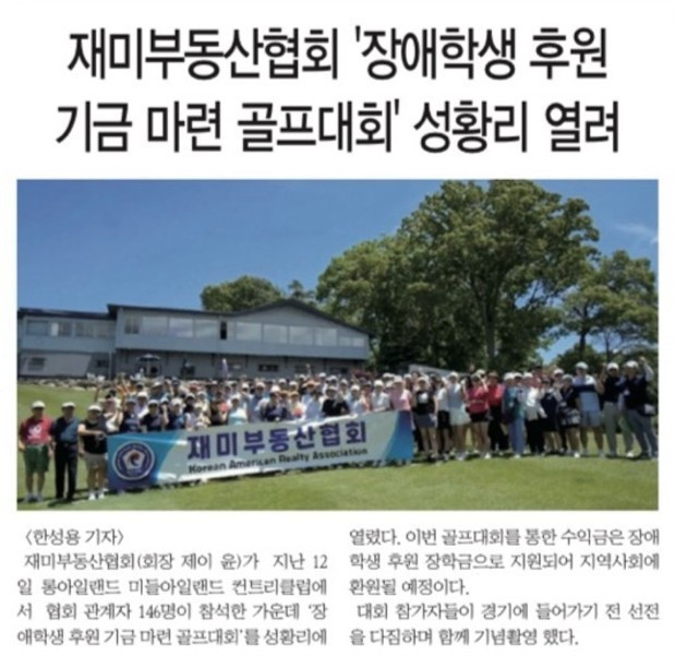 골프 게임을 통해 모금된 기금을 재미부동산협회가 주관하여, 연말에 장애우 3명에게 뜻깊은 장학금으로 전달하는 의미 있는 행사를 진행합니다. 이번 기회를 통해 지역사회의 소외된 이들에게 희망과 지원을 전하고, 함께 나누는 따뜻한 마음을 실천하고자 합니다.