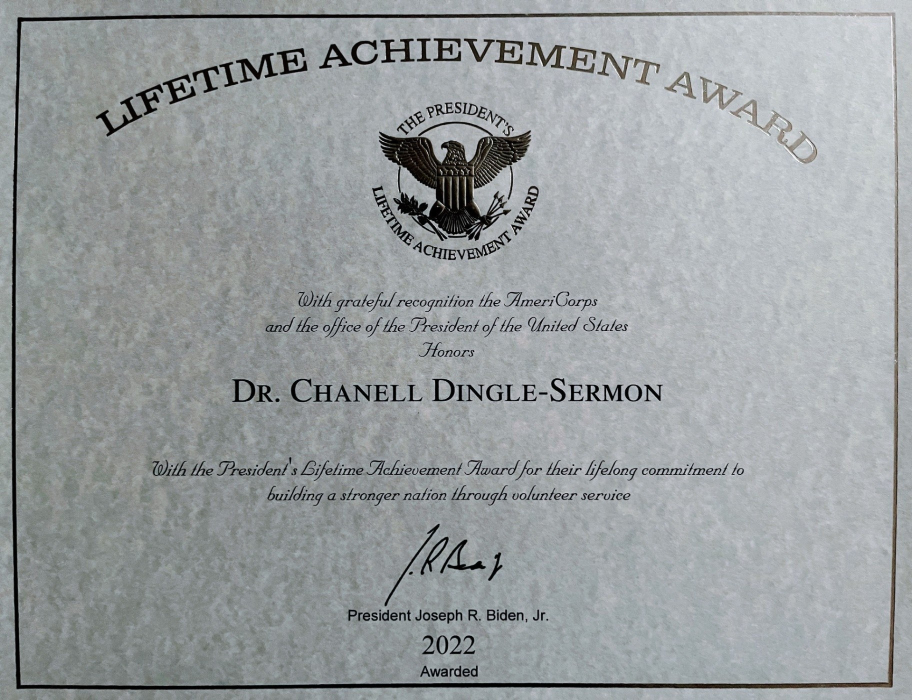 Dr. Chanell has been advocating for domestic violence awareness and mental health awareness while helping others in her community since 2021. She has been present in the community through her nonprofit organization, Kappa Epsilon Lambda Royal Christian Sorority, Incorporated, inspiring women nationally to give back to their communities while providing a safe space for women to grow and heal together. Additionally, Dr. Chanell is a President's Lifetime Achievement Award honoree for her years of supporting others through her time, skills, and talents.