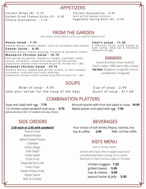 Download our menu